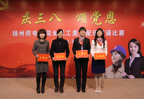 揚(yáng)州供電公司女職工委員會(huì)3月4日下午舉辦“慶三八、頌黨恩——揚(yáng)州供電公司女職工美文配樂(lè)朗誦比賽”活動(dòng)。公司女職工選手以美文配樂(lè)朗誦的形式,向偉大的中國(guó)共產(chǎn)黨表達(dá)了由衷的熱愛(ài)。揚(yáng)州供電公司黨委書記馬愛(ài)杰、工會(huì)主席吳鴻出席活動(dòng),揚(yáng)州各縣公司工會(huì)主席、各基層分工會(huì)主席、女工委員、女職工代表90多人參加了這次活動(dòng)。