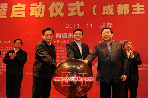 11月4日17時(shí)24分,在四川省委、省政府與國(guó)家電網(wǎng)公司共同舉行的“十二五”四川藏區(qū)電網(wǎng)項(xiàng)目集中開(kāi)工暨啟動(dòng)儀式上,四川省委書(shū)記劉奇葆、省長(zhǎng)蔣巨峰與國(guó)家電網(wǎng)公司總經(jīng)理、黨組書(shū)記劉振亞在成都現(xiàn)場(chǎng)共同按下啟動(dòng)儀式球,標(biāo)志著四川藏區(qū)電網(wǎng)進(jìn)入快速發(fā)展的嶄新時(shí)期。