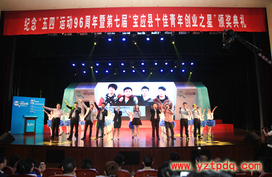 2015年4月28日,紀(jì)念“五四”運(yùn)動(dòng)96周年暨2015“尋跡·創(chuàng)業(yè)路”第七屆“寶應(yīng)縣十佳青年創(chuàng)業(yè)之星”頒獎(jiǎng)典禮在縣行政會(huì)議中心報(bào)告廳隆重舉行。寶應(yīng)縣委書記、縣人大常委會(huì)主任王炳松,團(tuán)市委書記佘俊臣,縣領(lǐng)導(dǎo)周玉寶、王友芳、顧長(zhǎng)榮、張偉、夏征宇、楊洪國(guó)、王松年等出席活動(dòng)。