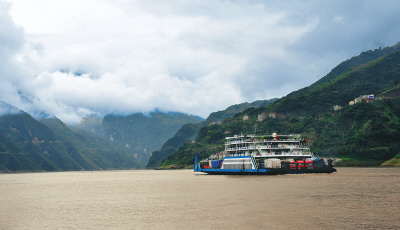 圖為一艘輪船行駛在三峽西陵峽境內(nèi)秭歸縣屈原鎮(zhèn)水域?! ?br />
