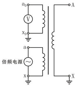 倍頻感應耐壓試驗接線如圖上所示,在二次繞組ax側施加倍頻電壓,從輔助二次繞組側測量。一次繞組試驗電壓按出廠電壓的85%進行試驗,出廠值不明的按表1-1所示試驗電壓進行試驗。倍頻感應耐壓試驗電壓同工頻交流耐壓試驗的試驗電壓。