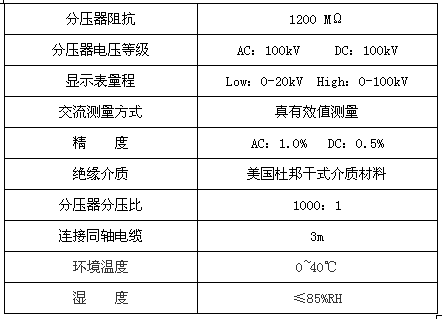 本儀器是由高壓分壓器和低壓顯示儀表構(gòu)成,高壓分壓器采用國(guó)外杜邦填充材料,特種工藝灌封,結(jié)構(gòu)更小,重量更輕,內(nèi)部局部放電量降到,可靠性更高。不存在漏油問(wèn)題。工作時(shí)高壓分壓器和低壓儀表采用同軸電纜連接,高低壓部分距離較遠(yuǎn),工作安全可靠。
