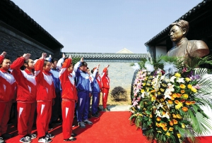 活動中,王榮平和江上青烈士長女江澤玲女士為江上青烈士銅像揭幕。當(dāng)日,中國紅十字基金會在儀征市揚(yáng)子學(xué)校設(shè)立江上青仁愛助學(xué)基金。