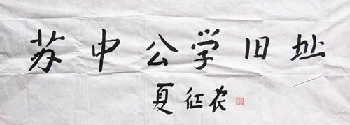 通過(guò)一路幽靜的鄉(xiāng)間小道,在一片田野中,我們看到了一個(gè)略顯陳舊但是巍巍聳立的紀(jì)念碑,碑上有蘇中公學(xué)老校長(zhǎng)、原上海市委書記處書記夏征農(nóng)親筆題寫的“蘇中公學(xué)紀(jì)念碑”七個(gè)大字,塔頂裝飾著當(dāng)年蘇中公學(xué)的金黃色?;諛?biāo)志,高高屹立在天空中,熠熠生輝。慢步走近紀(jì)念碑,碑身兩側(cè)有兩塊漢白玉大理石,上面鐫刻著和公學(xué)學(xué)員學(xué)習(xí)、練兵的圖案,真實(shí)的反映了當(dāng)時(shí)學(xué)院學(xué)習(xí)的情景。