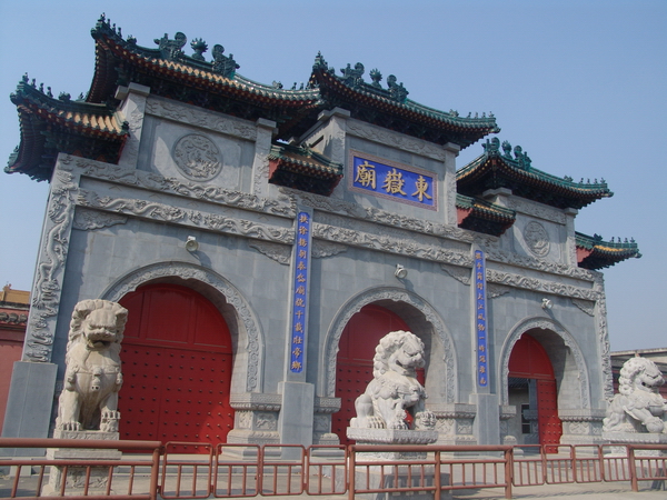 【建設(shè)現(xiàn)狀】恢復(fù)重建的東岳廟占地近30畝,現(xiàn)已建成山門、靈官殿、東岳寶殿、客堂、齋堂、鐘鼓亭等。山門于2006年10月完工,總投資100多萬(wàn)元,在全國(guó)來(lái)說(shuō)都不多見。山門兩側(cè)建有城隍殿、客堂、齋堂等配房。前殿(靈官殿)落成于1999年,內(nèi)部供奉道教靈官祖師(王靈官)以及青龍、白虎、朱雀、玄武四大神像。主體工程?hào)|岳寶殿建成于2003年,總投資600多萬(wàn)元,正面懸掛的巨幅牌匾由已故全國(guó)道協(xié)會(huì)長(zhǎng)閔智亭道長(zhǎng)題字。殿內(nèi)供奉東岳大帝、慈航、十大太保等。