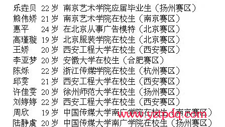 華利•2011中國(guó)揚(yáng)州美女大賽12強(qiáng)名單