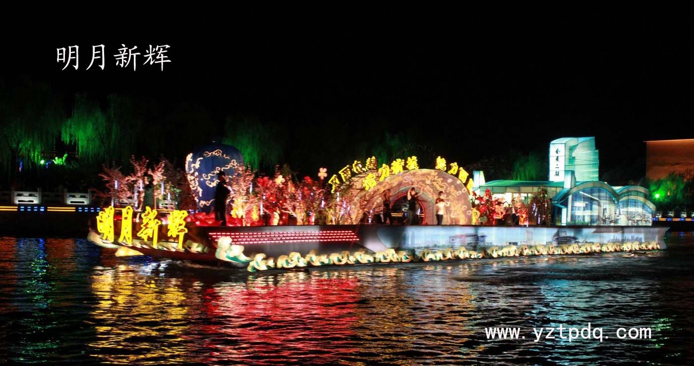 新城西區(qū)承制的“明月新輝”號花船,首先映入我們眼簾的是雙博館鎮(zhèn)館之寶“霽藍(lán)釉白龍梅瓶”,它是世界舉世無雙的珍稀國寶。瞧,在絢麗的燈光照耀之下,仿佛讓人們有了一種穿越揚(yáng)州2500年歷史的感覺。