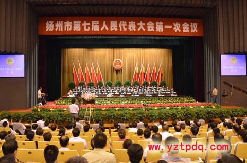 6月27日上午10:00,揚(yáng)州市七屆人大一次會議在揚(yáng)州會議中心隆重開幕。寬敞明亮的會場上,鮮艷的紅旗簇?fù)碇f嚴(yán)的國徽,盛放的鮮花透露出盎然生機(jī),來自各條戰(zhàn)線上的市人大代表肩負(fù)著全市人民的重托,滿懷豪情、意氣風(fēng)發(fā)地出席會議。今天的大會由謝正義主持。本次大會應(yīng)到代表428名,出席大會的代表420名,合于法定人數(shù)。