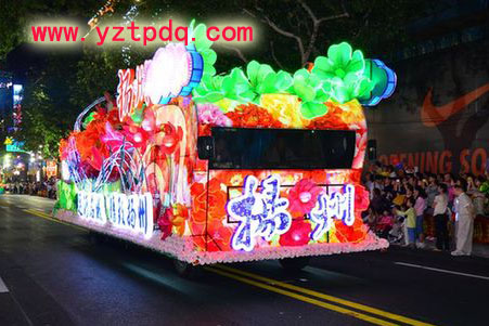 9月15日,上海旅游節(jié)開幕大巡游在上?;春B放e行,共有21輛花車和30支境內(nèi)外表演團(tuán)隊(duì)亮相。其中,揚(yáng)州選送的“運(yùn)河名城、精致?lián)P州”大型花車,展示了古城揚(yáng)州的迷人風(fēng)采。由揚(yáng)州市旅游局選送制作的揚(yáng)州花車首次以揚(yáng)州城市代表身份參加了2012上海旅游節(jié)花車巡游活動(dòng)。