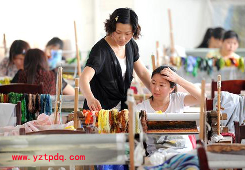 一時,擱置多年曾受冷遇的刺繡,又以嶄新的形式,在寶應(yīng)的東蕩水鄉(xiāng)魯垛鎮(zhèn)紅火起來。開始只能繡些日本和服腰帶等小產(chǎn)品,漸漸的,小作坊很快紅火起來。“我們也是摸著石頭過河。”莫學(xué)春說,“現(xiàn)在我們的產(chǎn)品已經(jīng)遠(yuǎn)銷海外,與日本、法國、烏克蘭、美國等數(shù)十個國家和地區(qū)建立了合作關(guān)系。”
