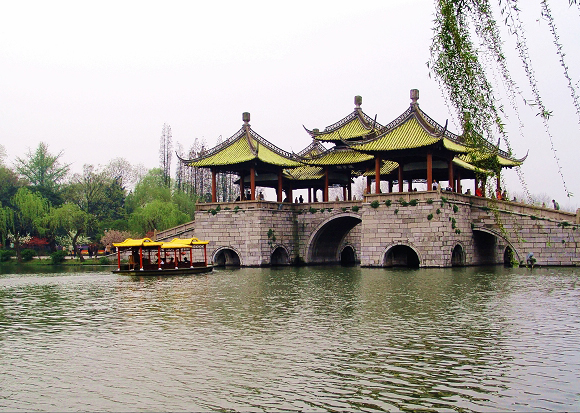 五亭橋就是少女身上那條華美的腰帶。五亭橋不但是瘦西湖的標(biāo)志,也是揚(yáng)州城的象征。它建于清乾隆二十二年,至今已有了兩百多年的歷史。