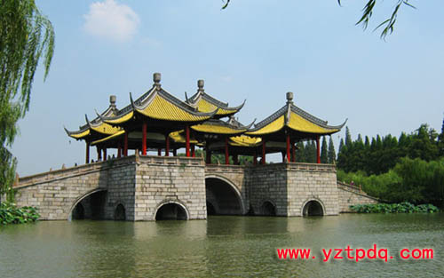 如果把瘦西湖比做一個婀娜多姿的少女,那么五亭橋就是少女身上那條華美的腰帶。五亭橋不但是瘦西湖的標志,也是揚州城的象征。