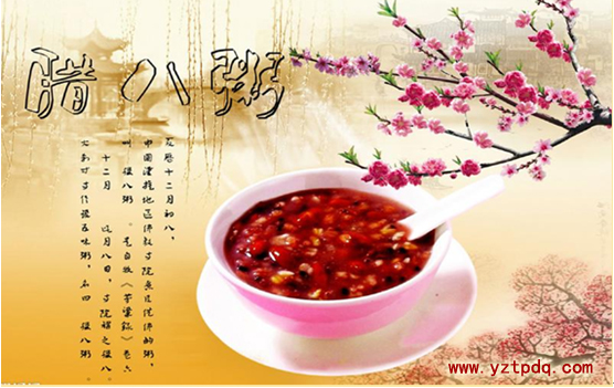 相傳農(nóng)歷臘月初八是佛祖釋迦牟尼得道之日。這天,佛教徒用米糧和果菜煮粥供佛,稱“臘八粥”。民間煮臘八粥,講究的要用桂元肉、蜜棗、花生米、蓮子、銀耳、白果、栗子等摻合在糯米中煮成。后來(lái)吃粥之風(fēng)傳及民間,這天,揚(yáng)州家家都吃臘八粥。