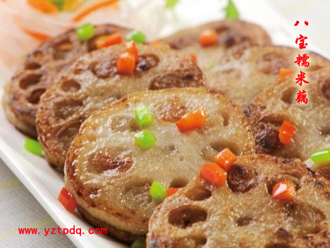 糯米藕是很多女孩的心頭之好,既可當(dāng)零食,也可以上得酒席。在揚(yáng)州,一年四季都能吃到八寶糯米藕,不過,倘若說好吃,還得數(shù)用寶應(yīng)出產(chǎn)的蓮藕來制作,才能達(dá)到入口酥軟、香糯、甜潤、清香的感覺。制作這道菜的秘訣在于一定要用成年老藕。