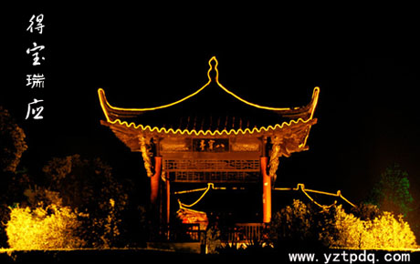 如今,在城中心的縱棹園里。進了素磚、高瓦的園門,走過垂柳依依的石路,踏上溪流涓涓的小橋,那飛檐翹角、凌然欲飛的八寶亭就躍人了你的眼簾。遠遠地,趙樸初先生書寫的餾金大字“八寶亭”赫然醒目,映射出寶應(yīng)唐代繁華歷史。