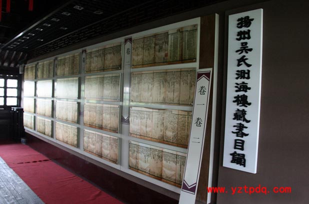 吳道臺宅第早在籌建之時,吳引孫就指示在宅地內仿寧波“天一閣”的結構建“測海樓”。百年之后,作為吳道臺宅第的重要組成部分——測海樓以江南現(xiàn)存私人藏書樓“遺世而獨立”。吳引孫一生酷愛書籍,當年他每購置一部書就作一記錄,記下所購書的卷數(shù)、函數(shù)、購買的錢數(shù),精心蓋上“真州吳氏有福讀書堂”的藏書印,還組織人將這些書統(tǒng)統(tǒng)編為一部書目,題名為《揚州吳氏測海樓藏書目錄》,并刻印成書。