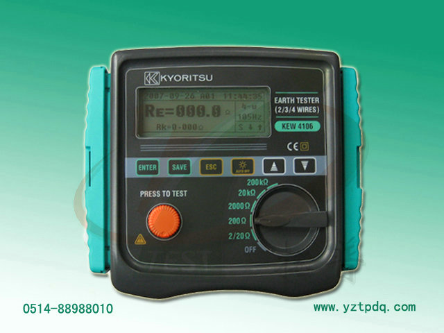 KEW 4106接地電阻測試儀是一款數字式智能化接地電阻測試儀,可進行測試環(huán)境參數測量Ust(干擾電壓),F(xiàn)st(干擾頻率)。具有數據傳輸(和PC連接),在PC端可進行數據處理分析功能。且防水防塵功能強,以防水防塵IEC60529(IP)為準,可在惡劣環(huán)境下進行測試。